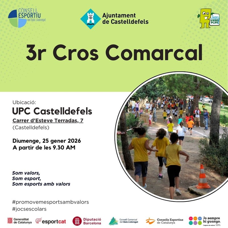 El pròxim diumenge 25 de gener, el Parc Mediterrani de la Tecnologia (PMT) serà l'escenari de la tercera edició del Cros Comarcal de Castelldefels. Aquesta competició, organitzada per l’Àrea d’Esports de l’Ajuntament, aplegarà infants i joves en una jornada dedicada a l'esport escolar.